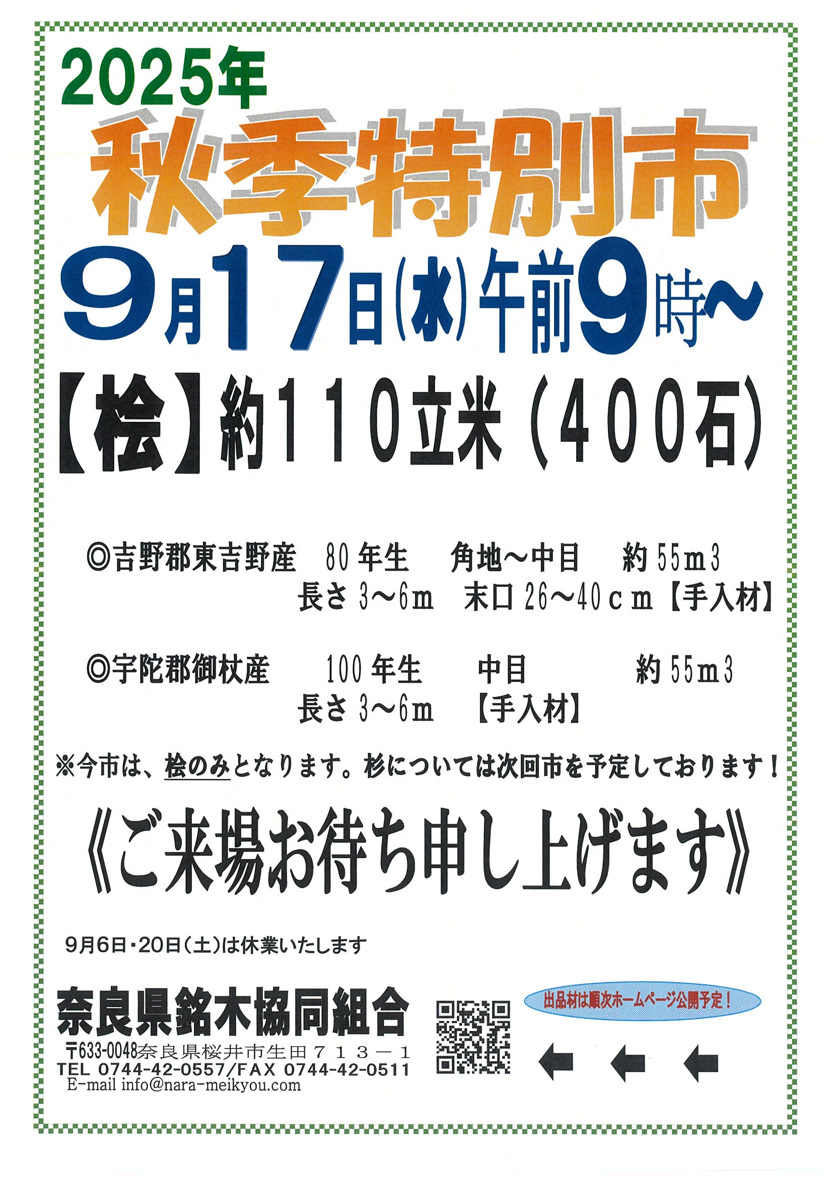 令和7年9月17日 優良桧市「秋季特別市」